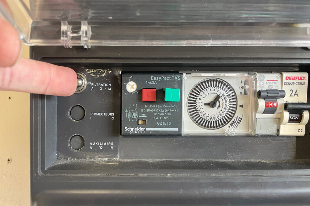 In de installatie schakelt de timer niet rechtstreeks de pomp, maar stuurt die een relais/contactschakelaar aan, die op zijn beurt de stroomtoevoer naar de pomp activeert op de gewenste tijdstippen. De timer wordt dus gebruikt om de automatische filtratietijd te beheren door de schakelaar te activeren. Deze aansturing kan behouden blijven, bijvoorbeeld met de pomp ingesteld op 70% van haar vermogen. Dat levert al snel een besparing van zo’n 60% op, bij identieke werkingstijden.