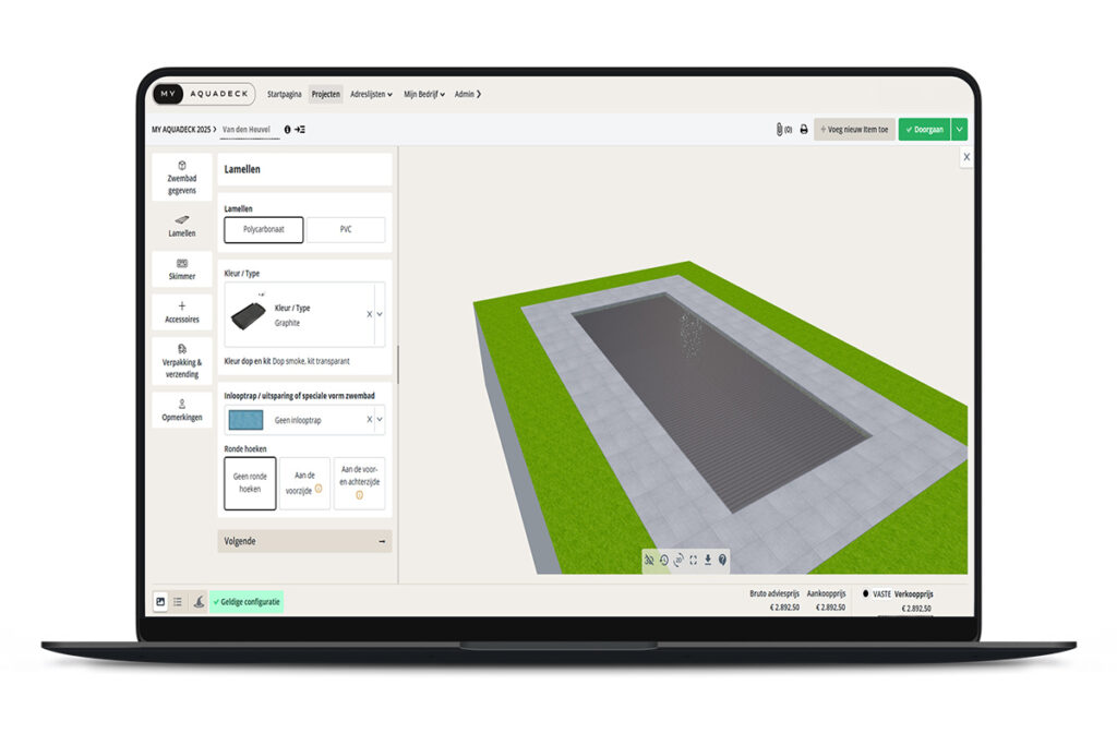 - Configureer snel en eenvoudig jouw Aquadeck afdekking in 3D